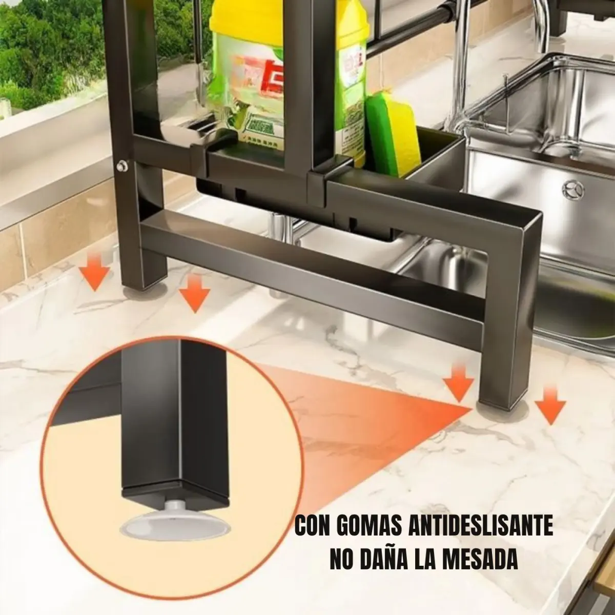 - Versatilidad: se adapta a diferentes medidas de bacha gracias a sus brazos laterales ajustables.